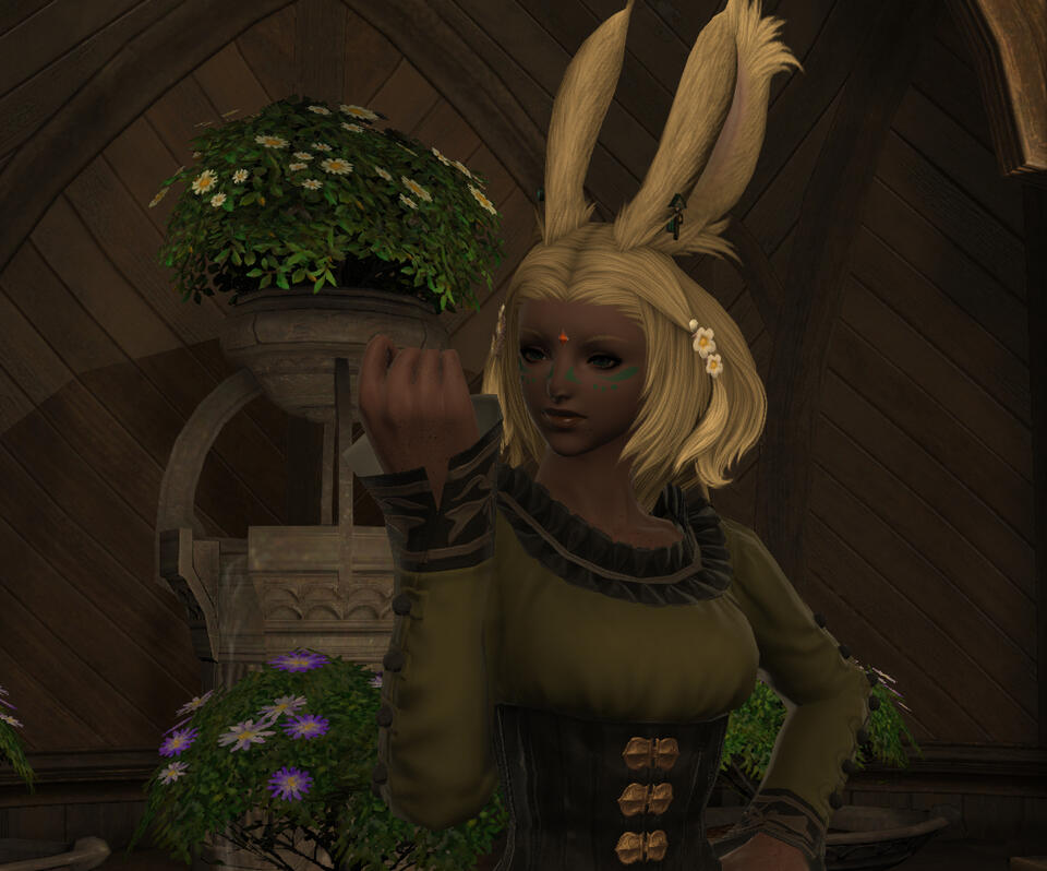 Kinara grew up on her family's farm on the outskirts of the Black Shroud. As a child she always took to nature far more than anything else, often times spending endless hours exploring the forests looking for new sights to see. While most of her siblings eventually left the farm for bigger and better things, Kinara chose to stay and work the farm with her parents, spending her days happily tending the fields and taking care of her best friends Betsy, the family cow.